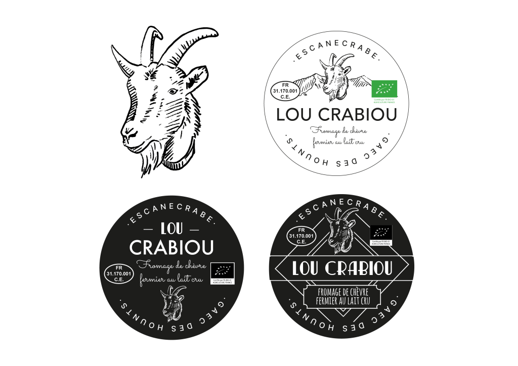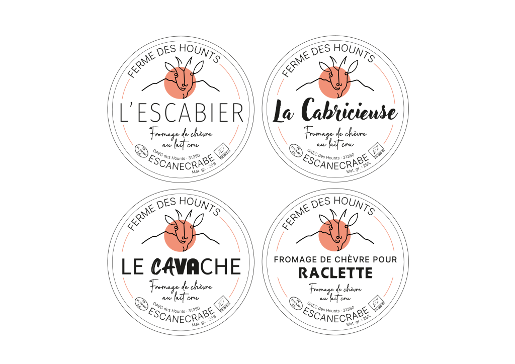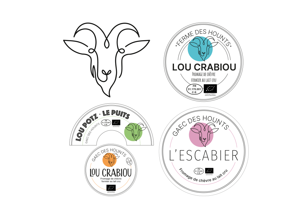 Réalisation d’un logo, d’une charte graphique et d’étiquettes produits pour le Gaec des Hounts, une chèvrerie à Escanecrabe.